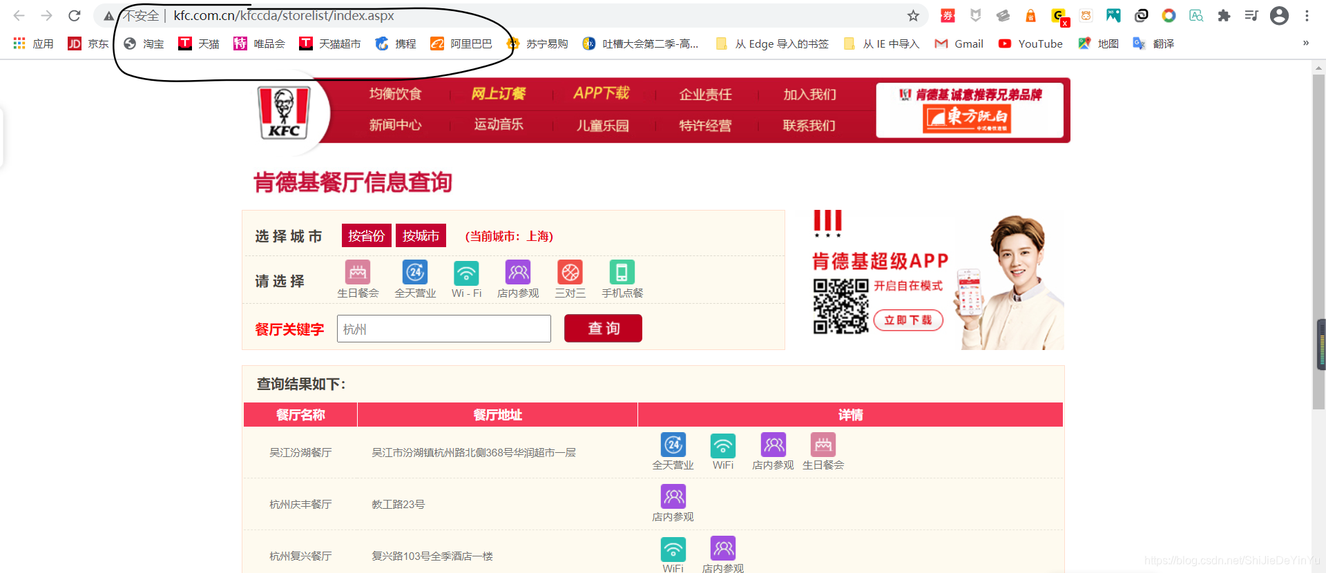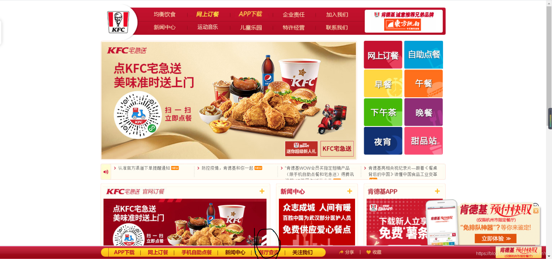首先我们打开肯德基的官网,点击 “餐厅查询”