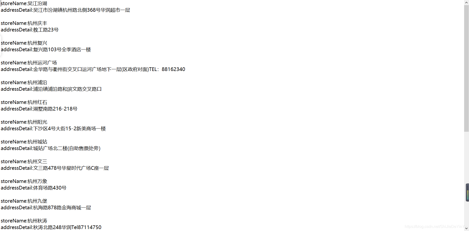 fp.write("storeName:" + detail["storeName"] + "\n" + "addressDetail:" + detail["addressDetail"] + "\n" + "\n")