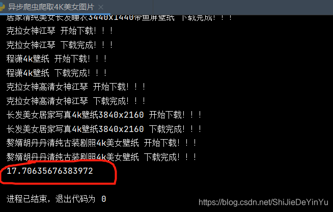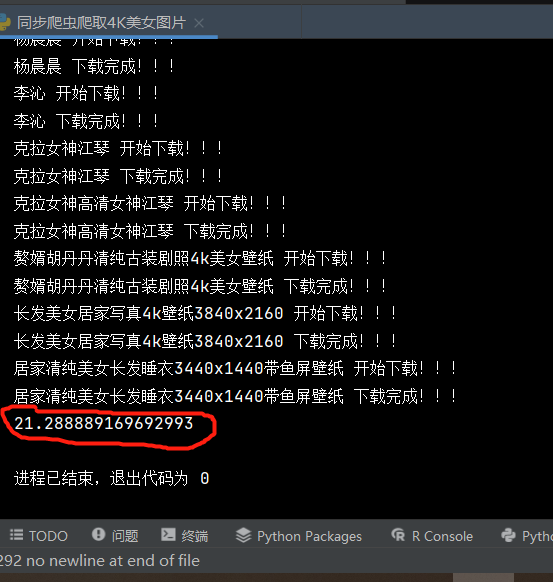 然后再让我们看看使用线程池的异步爬虫爬取这些图片需要多久