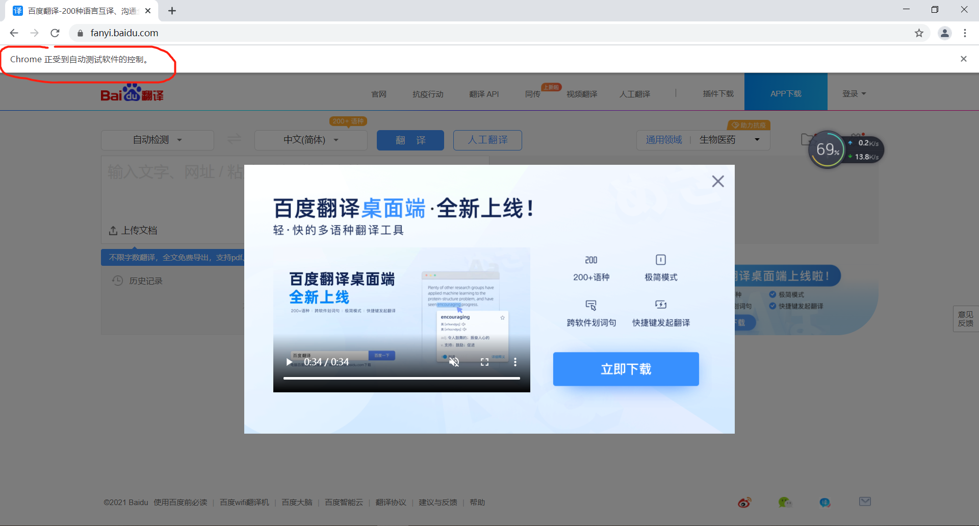 还是先定位到文本框的位置,再输入文字(使用 send_keys() 方法),点击翻译