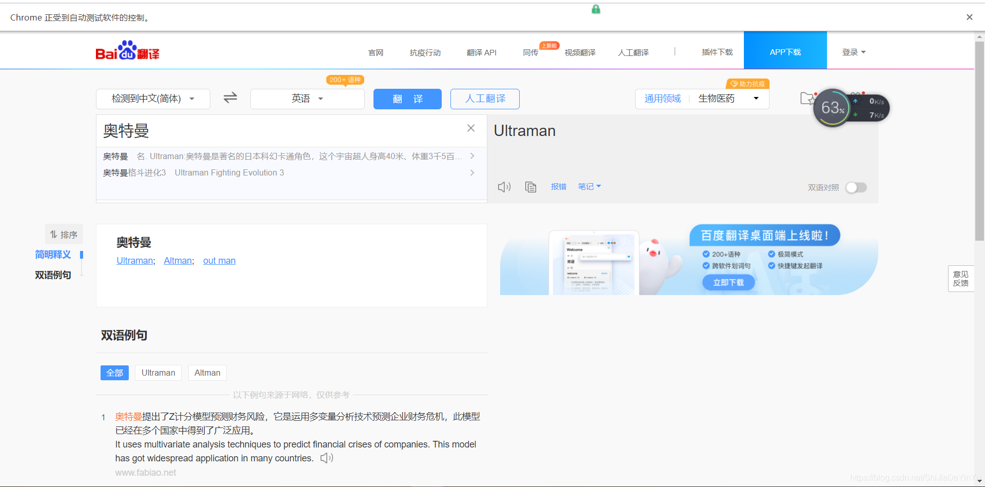 因为是动态加载的数据,所以我们不需要点击 “ 翻译 ”,结果就会自动出现。如果需要点击,我们也可以先定位按键的位置,再模拟点击。