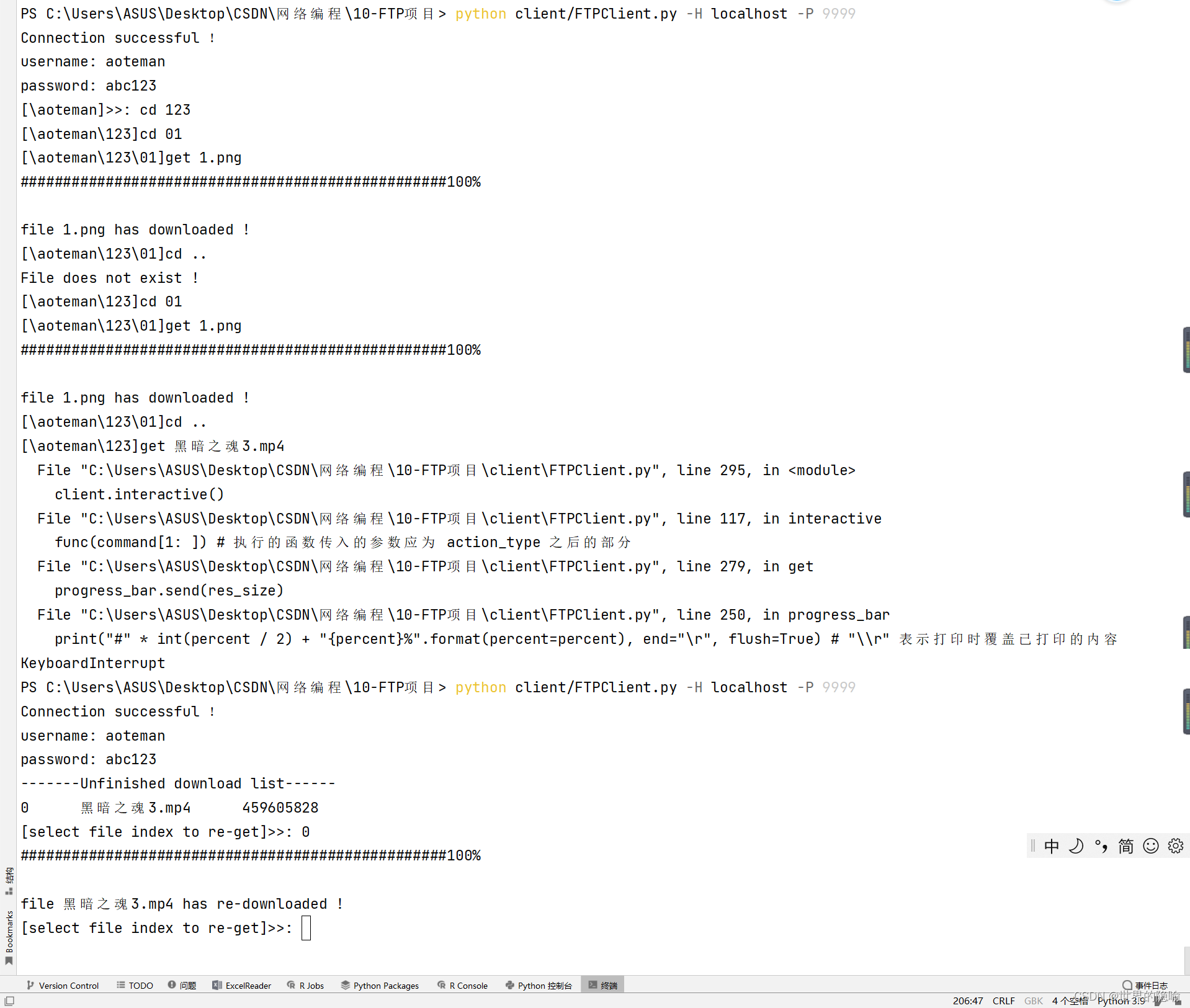 client文件夹下 FTPClient.py 代码 interactive函数 增加部分