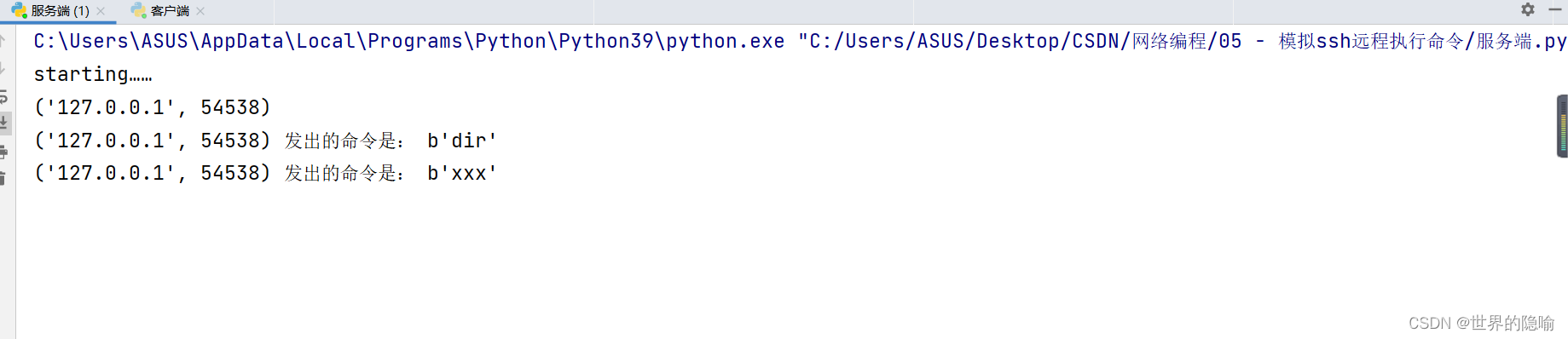 看运行结果,好像我们已经解决问题了,但仔细想想我们这段代码是写在 服务端的,我们需要做的是获取执行后得到的结果传递给客户端,但现在却是直接在服务端打印结果了。