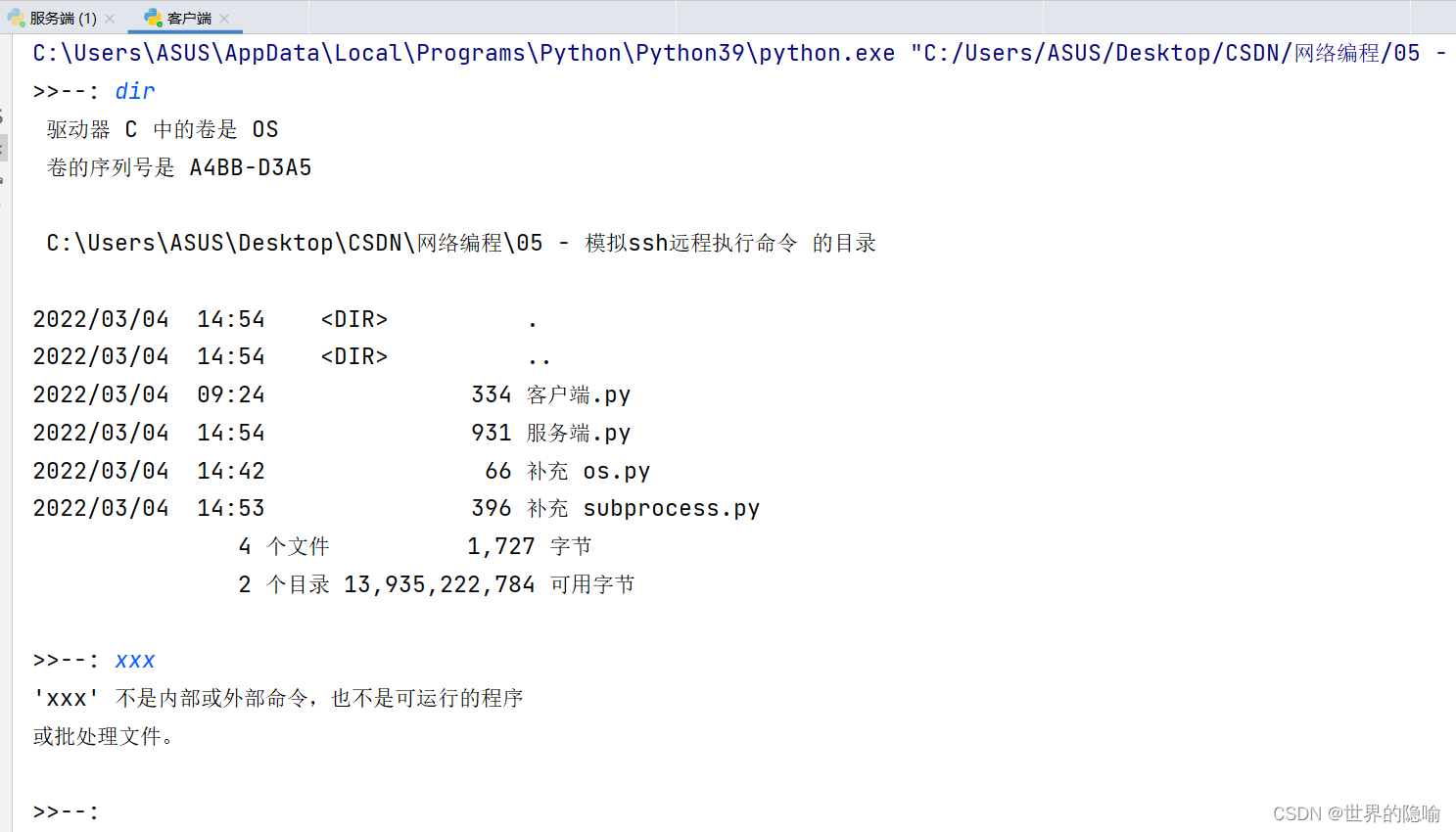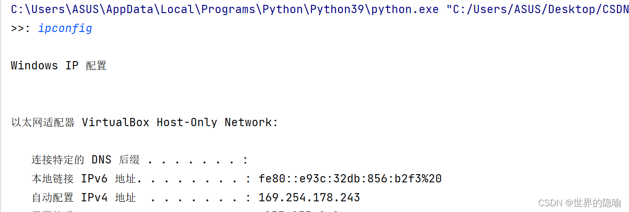 print(stdout.decode("gbk")) # windows 系统上终端以 gbk 编码方式输出,所以打印的时候要转换成 gbk 编码